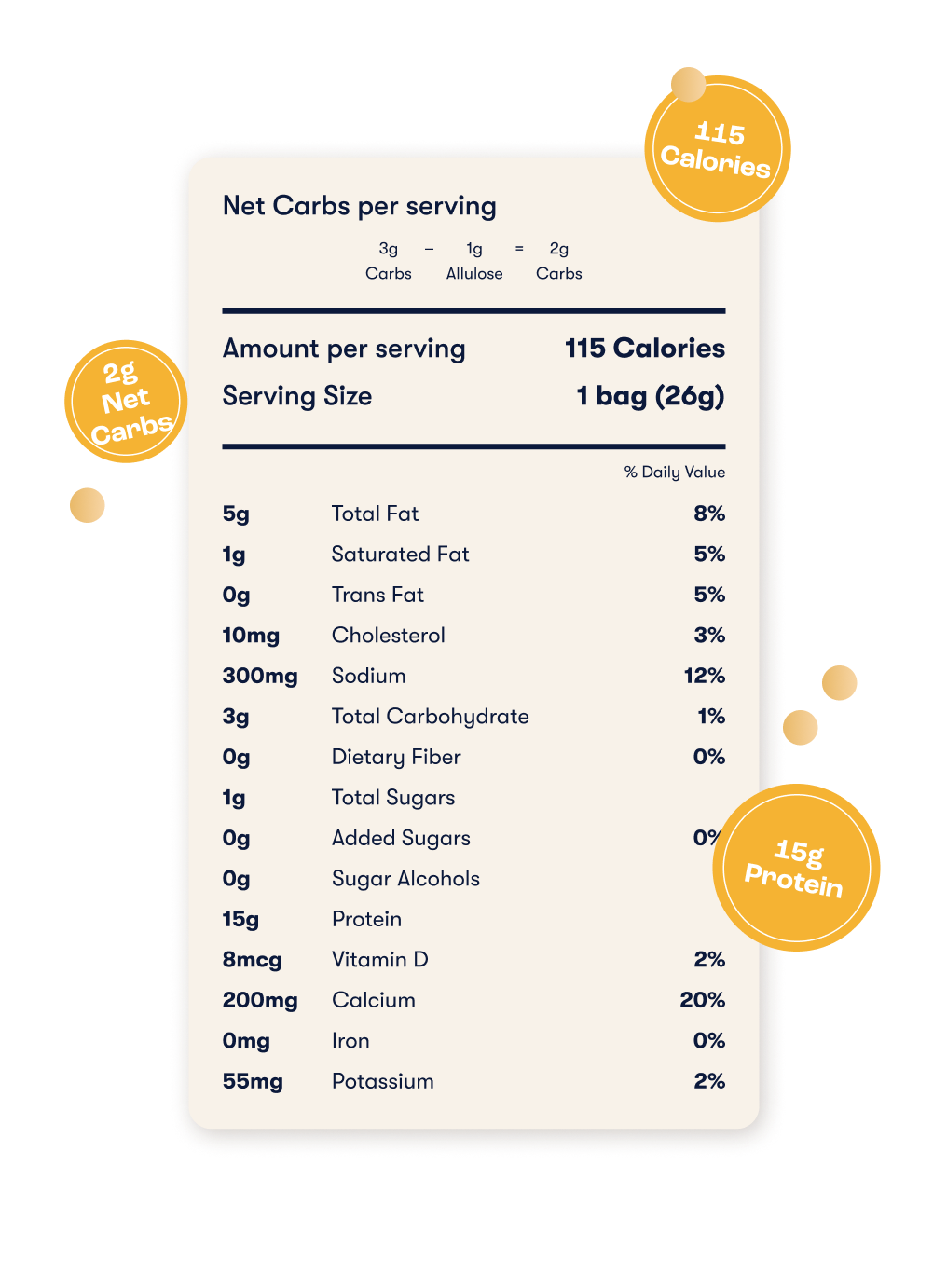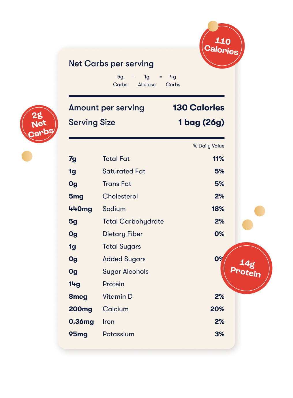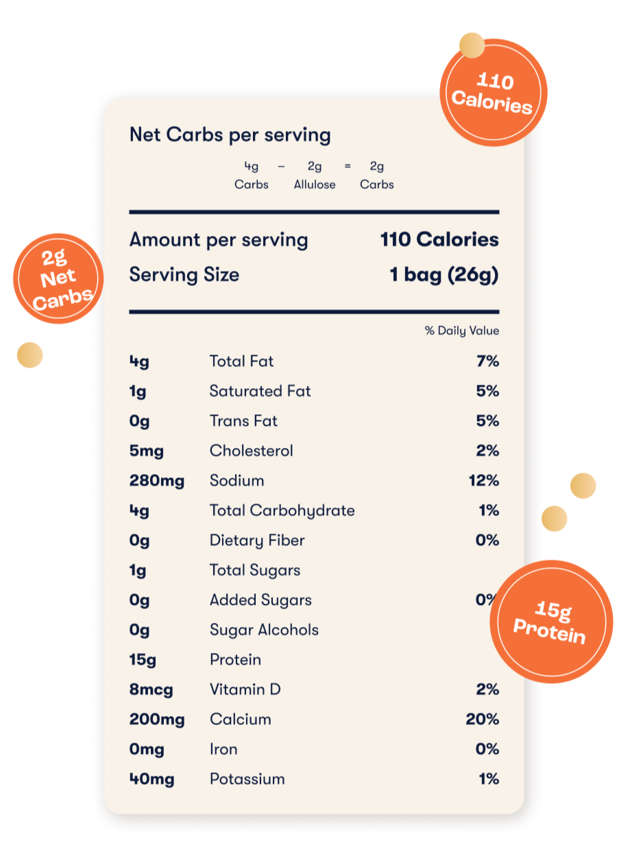 • Nearly no carbs – so you can fight 9pm cravings by tearing into another bag of Cheddar, Sour Cream (and more explosive flavors).